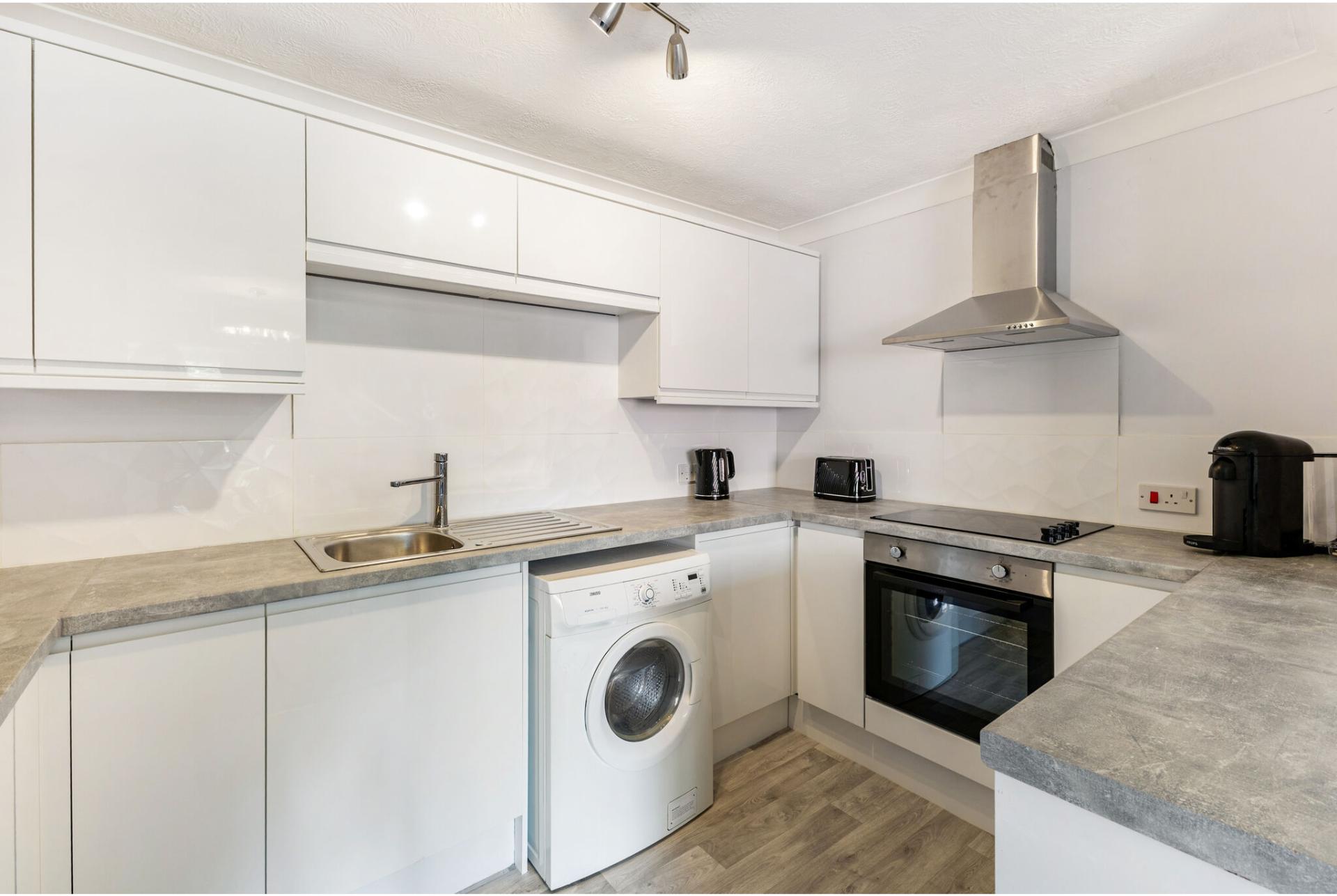 • Kitchen: Electric Hob, Oven/Grill, Fridge/Freezer, Microwave, Coffee Maker, Washer/Dryer